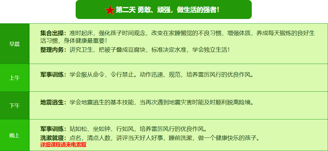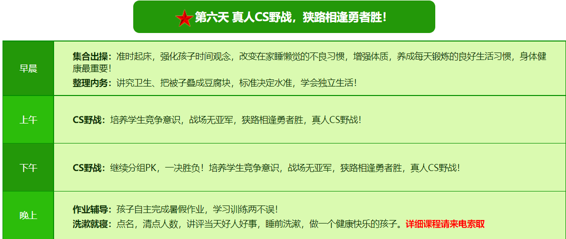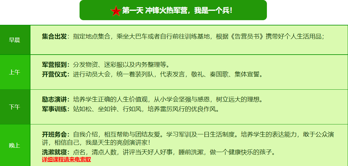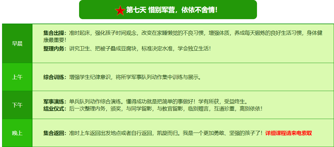 2025贵阳亮剑军事夏令营7日营课程表