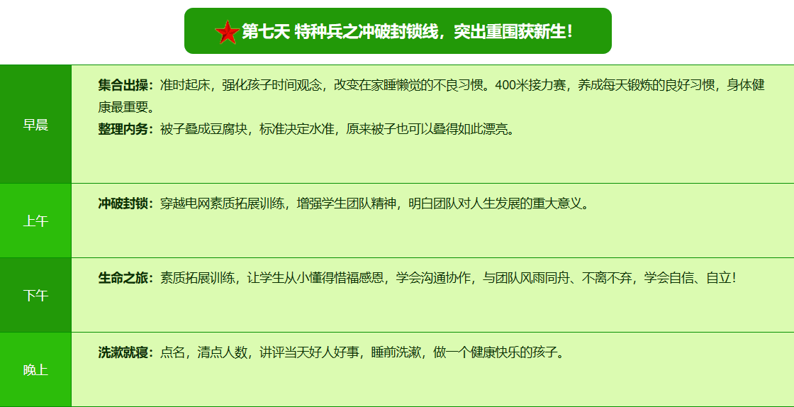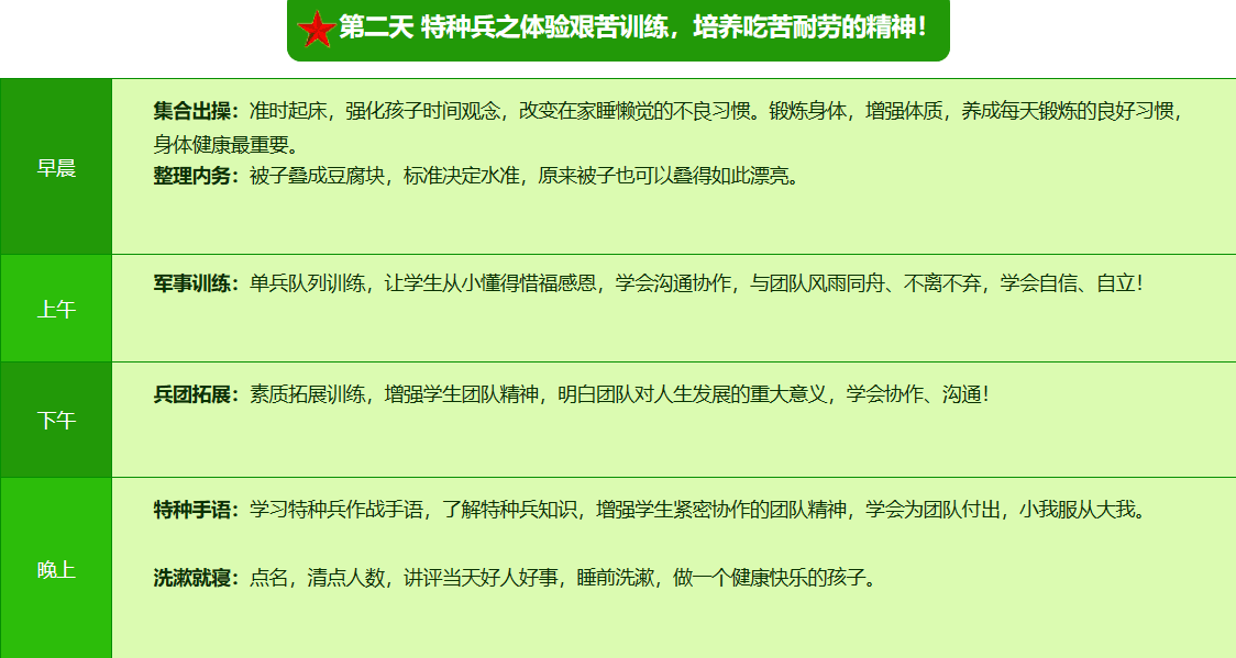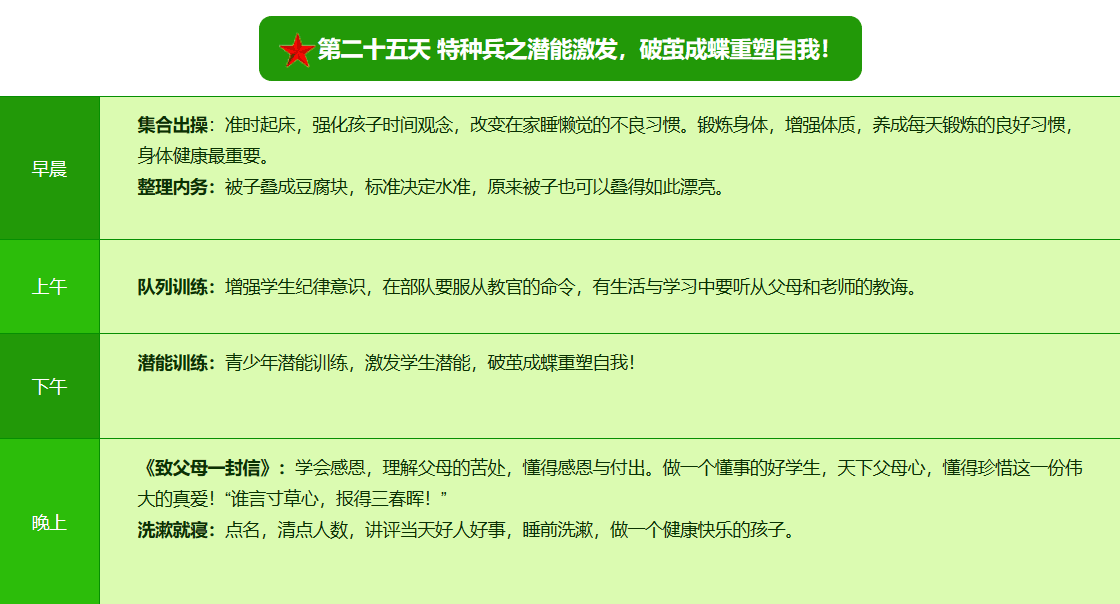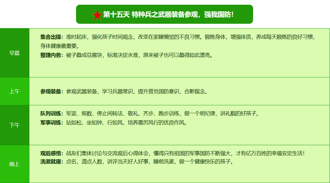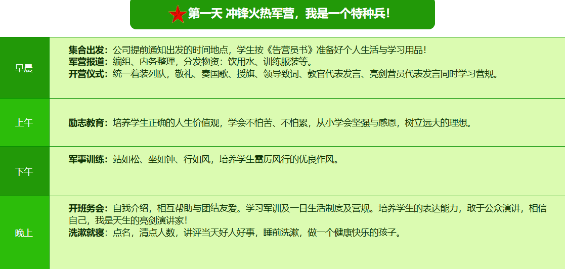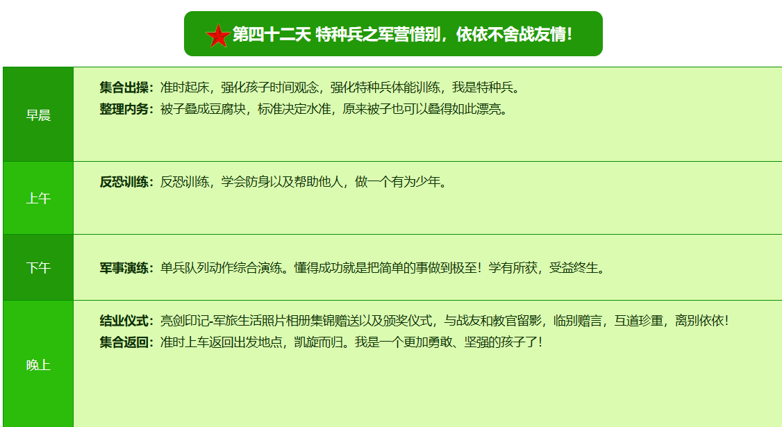 2025贵阳亮剑军事夏令营42日领袖营课程表