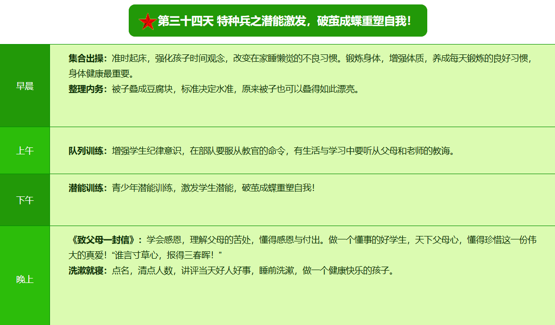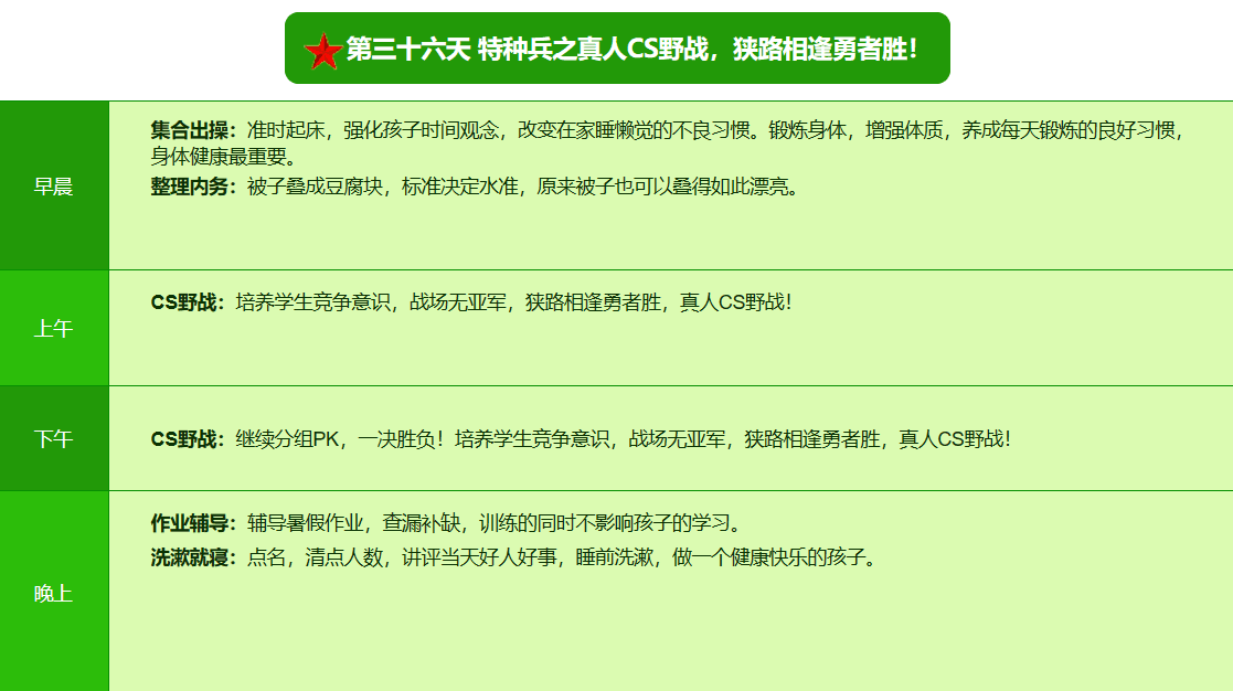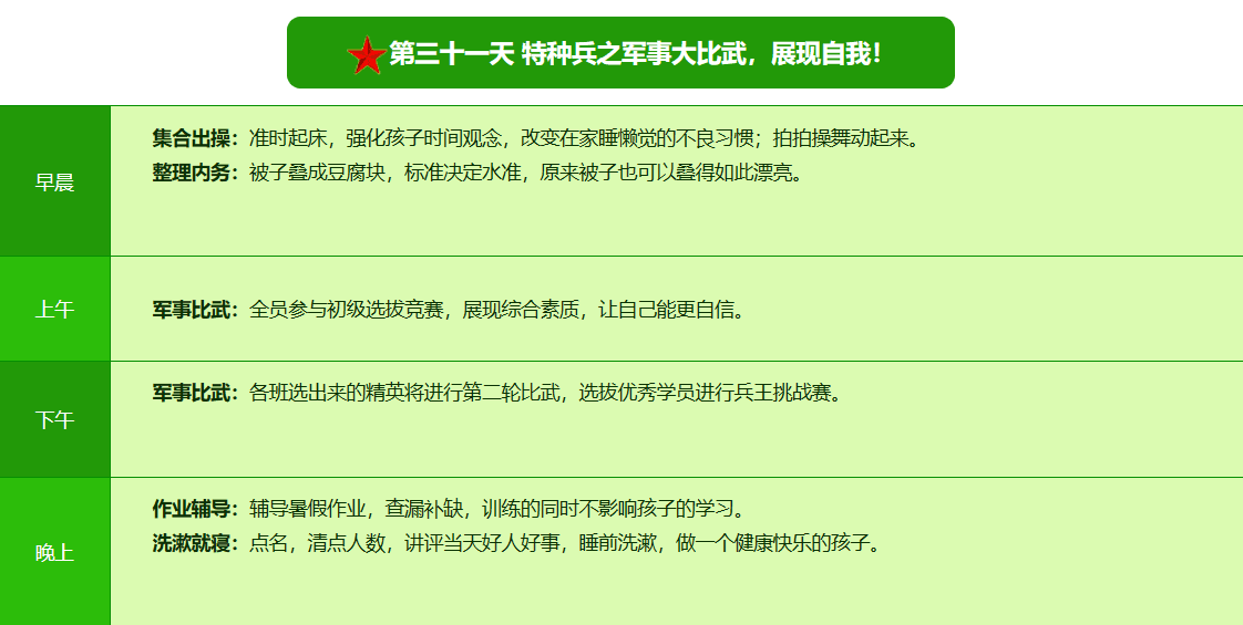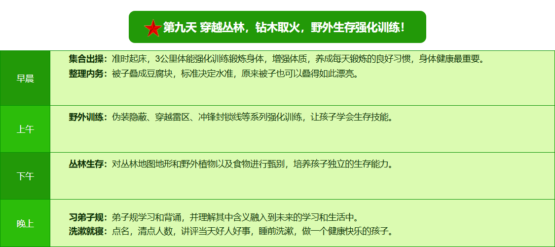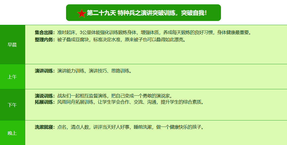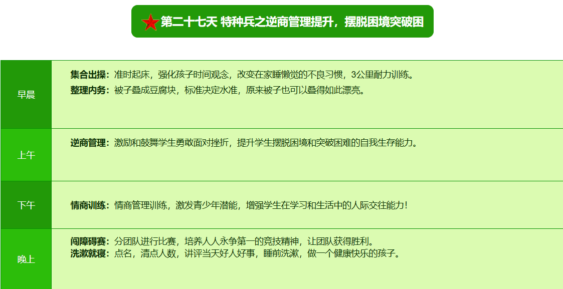 2025贵阳亮剑军事夏令营42日领袖营课程表